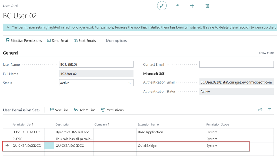 permission set by searching for “QuickBridge.” -